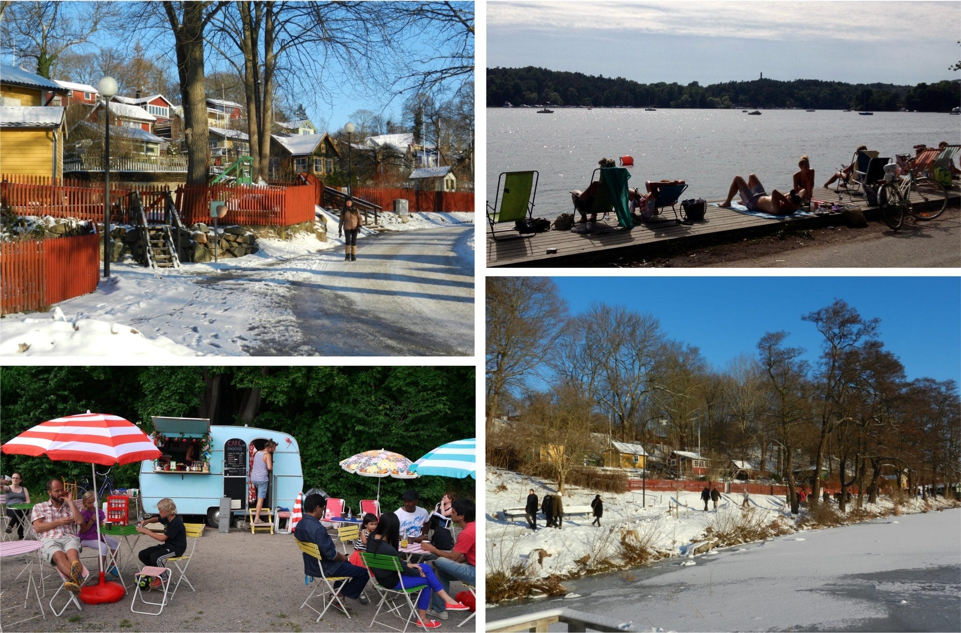 Après la piscine, le paysage devient plus campagnard avec le lac d’un côté et des jardins ouvriers de l’autre. C’est le lieu où les habitants de Södermalm viennent s’aérer, courir ou plonger en été.