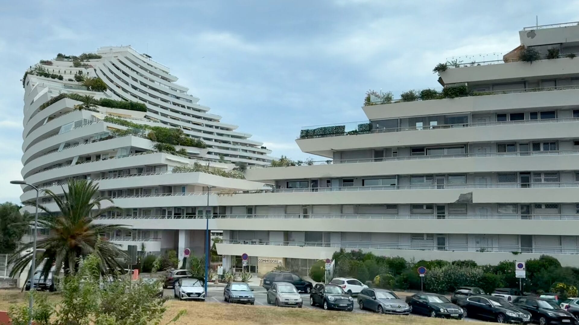 À la sortie de Nice, nous traversons la zone la plus urbanisée. Mon regard est attiré par des bâtiments imposants : Marina Baie des Anges. Très critiqué lors de sa construction dans les années 1970, ce complexe s’intègre finalement assez bien au paysage et je trouve sa silhouette réussie.