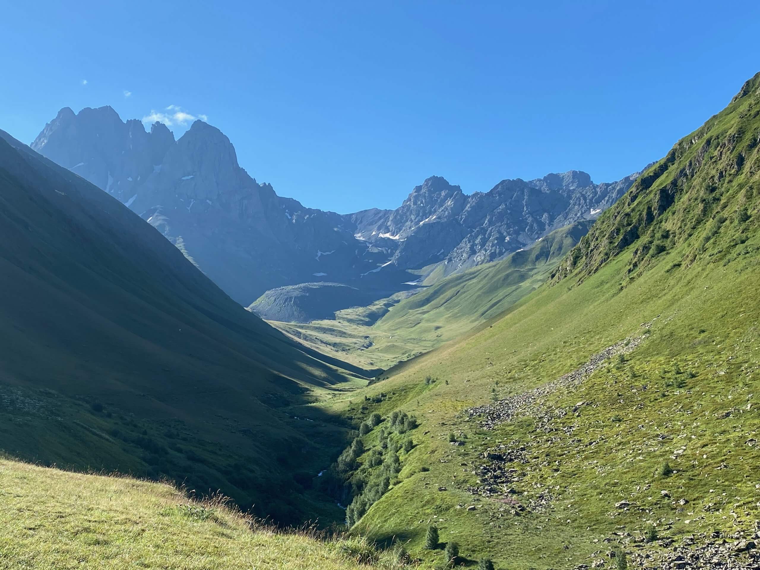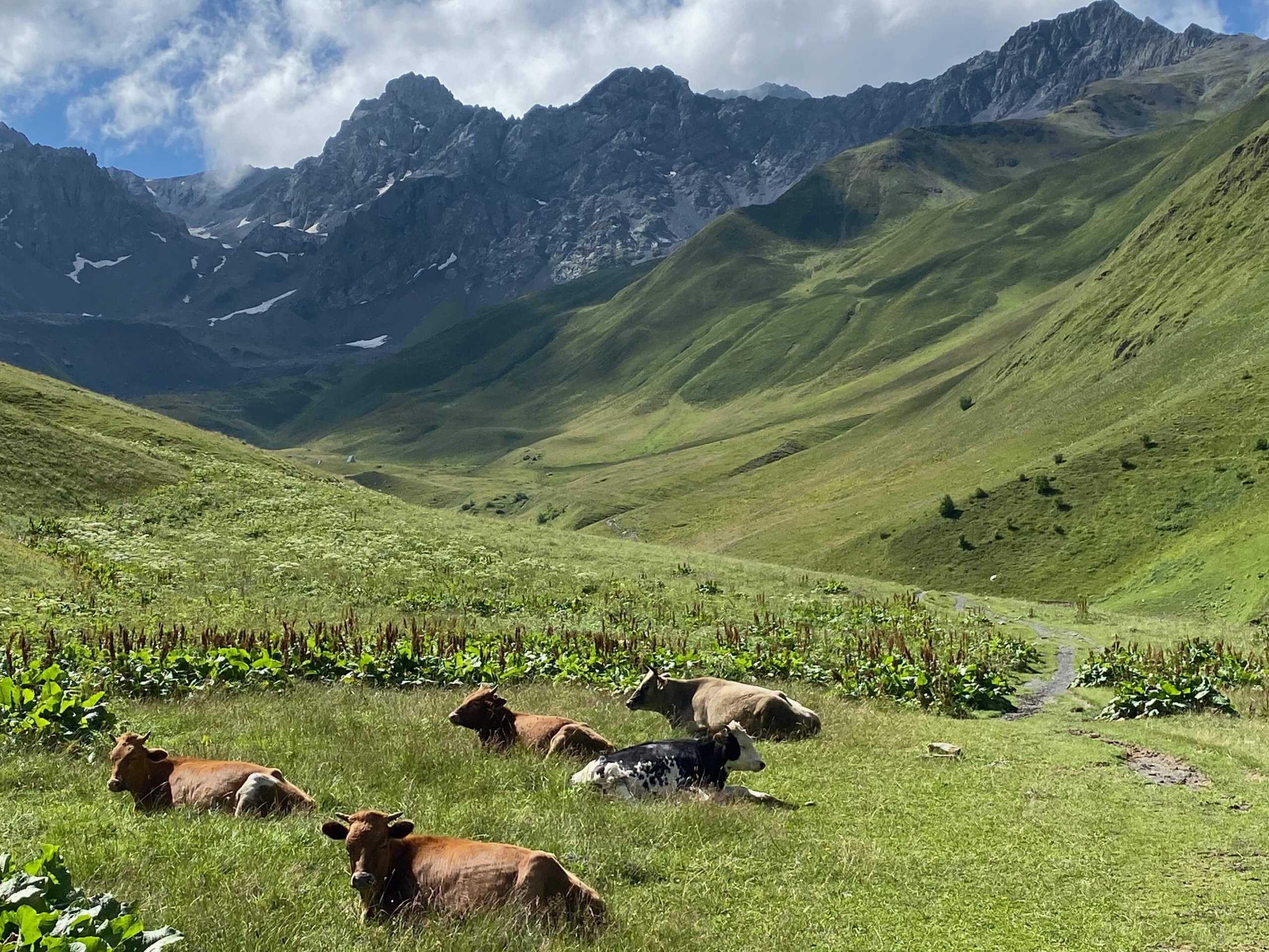 La Touchétie a été notre coup de cœur. Imaginez, des montagnes qui ressemble aux Pyrénées, mais en étant beaucoup plus isolée et sauvage ! La région n’est du reste habitée qu’en été par les autochtones qui viennent y accueillir des touristes et s’occuper de leurs élevages. Les villages ont un charme brut avec des chemins boueux et des animaux domestiques qui déambulent partout.